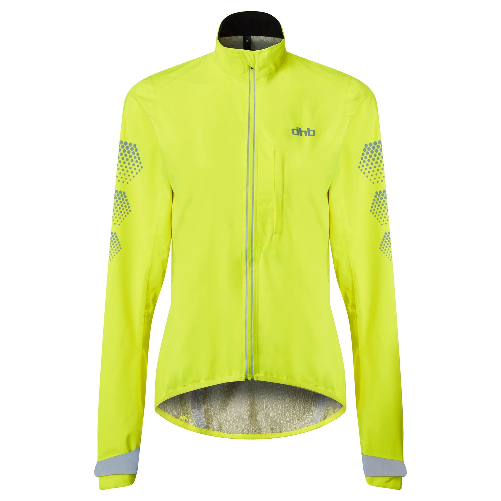 Weāve topped the fabric of this waterproof cycling jacket with unrivalled reflective graphics for 360° visibility, while adjustable cuffs, articulated sleeves and a brushed collar guarantee comfort.Ā There's great storage, too, with a chest pocket and large rear pocket with a reflective cover.